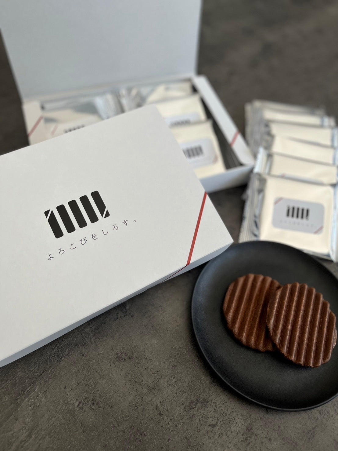 前橋市出身の元アスリート清水慶記氏が出す、溶けにくく割れにくい「よろこびをしるす。」ヴァッフェルです。サクサクの波紋型でしっとりとしたチョコレートを練りこんだ堅焼きワッフルです。一口食べると口の中に広がるチョコレートの香りと風味をお楽しみください。
